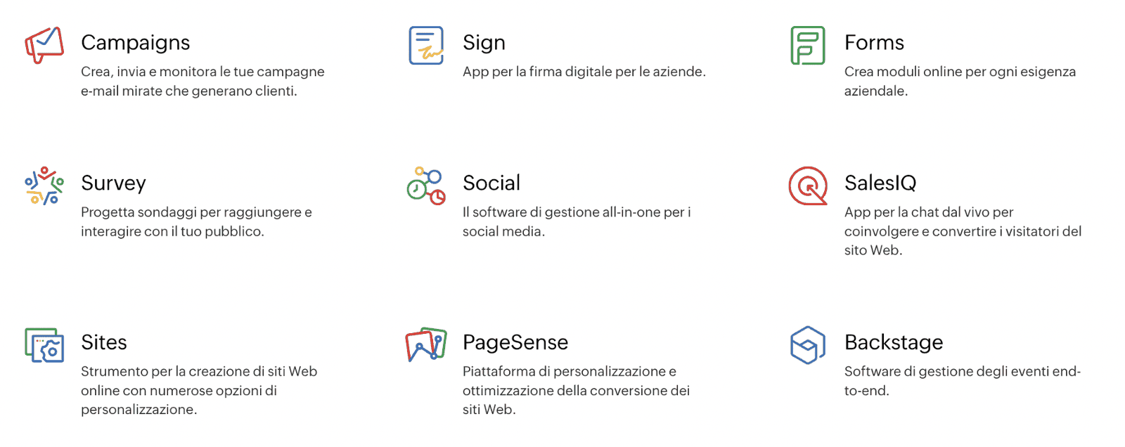 Tutte le Applicazioni della Piattaforma Zoho: